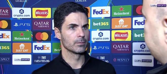 在主场3-1战胜拜仁的赛后,阿森纳主帅阿尔特塔接受了贝因体育的采访。